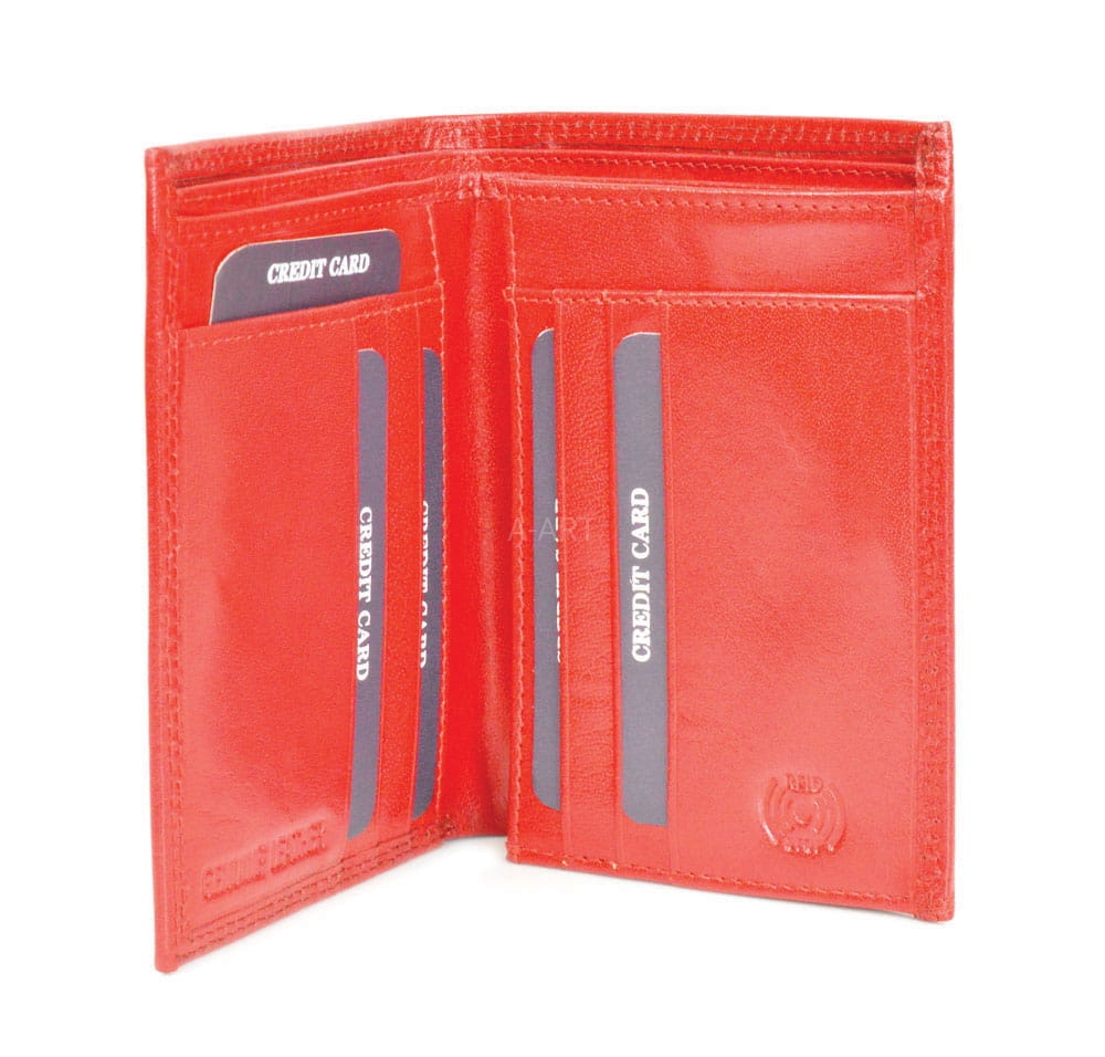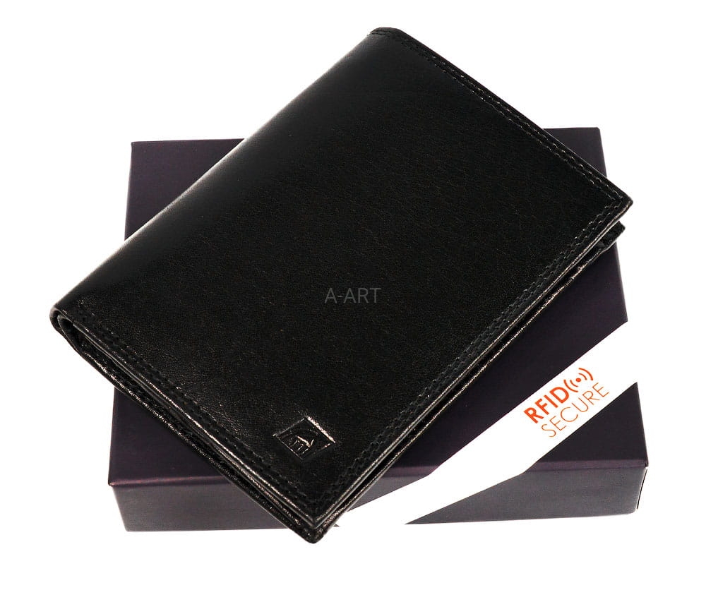 - Portfel wykonany w nowoczesnej technologii z innowacyjną podszewką blokującą sygnały RFID, która chroni karty płatnicze przed zeskanowaniem.