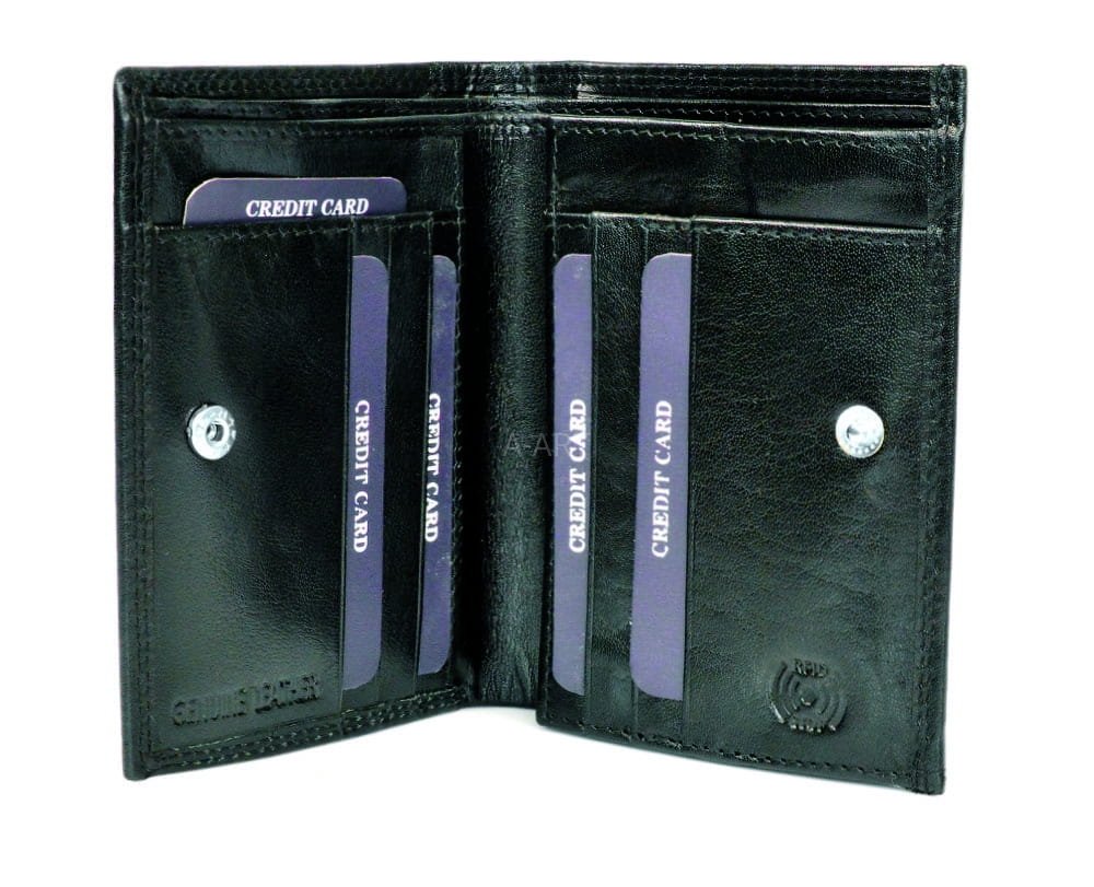 Uniwersalny portfel skórzany kominek, piekiełko RFID STOP