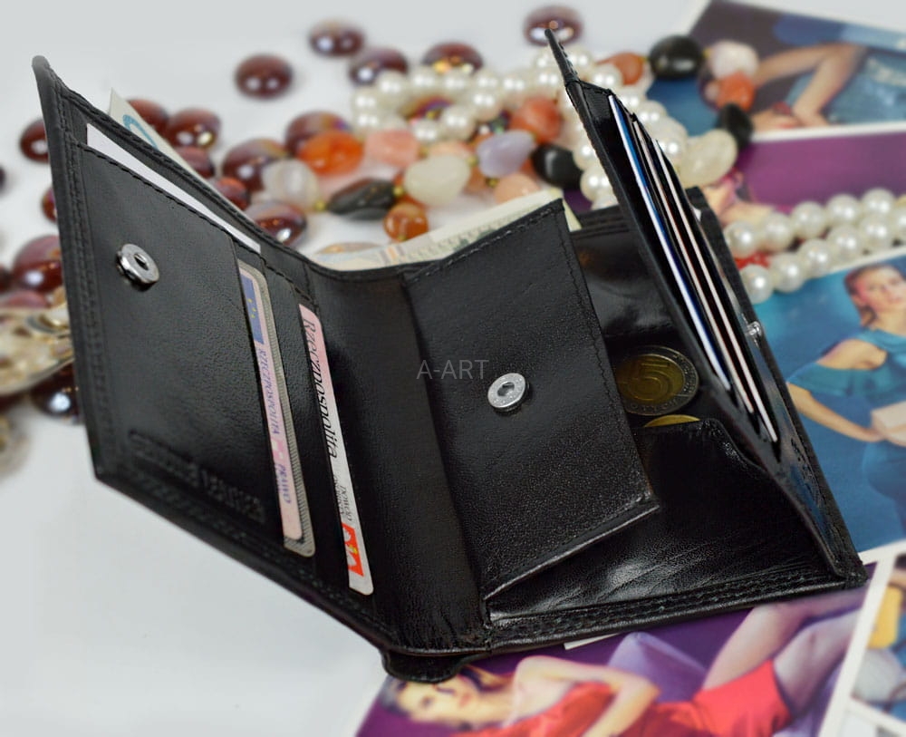 Ładny, praktyczny portfel z wieloma przegródkami, w tym - co dla mnie istotne - dużym "piekiełkiem" na bilon i miejscem na banknoty. Dokładnie wykonany. Jednocześnie nie za duży, zmieści się w mniejszej torebce