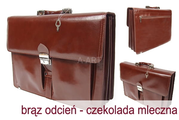 Teczka skórzana męska - stylowa i klasyczna, wykonana z naturalnej skóry o dużym połysku. Teczka posiada wygodną obciągniętą skórą rączkę i blokadę w postaci zamka na kluczyk.