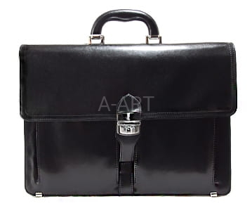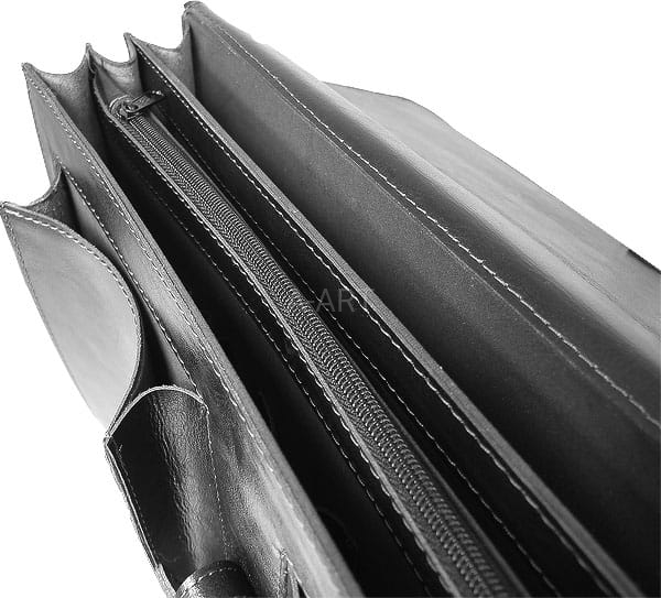 Teczka zamykana klapą na włoski zamek typu tic-tac w środku znajdują się 3 pojemne komory i jedna kieszeń zamykana na suwak.