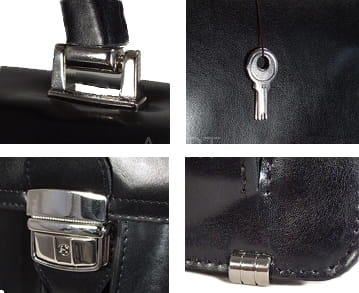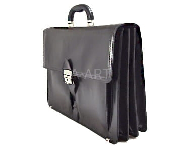 Teczka zamykana klapą na włoski zamek typu tic-tac w środku znajdują się 3 pojemne komory.