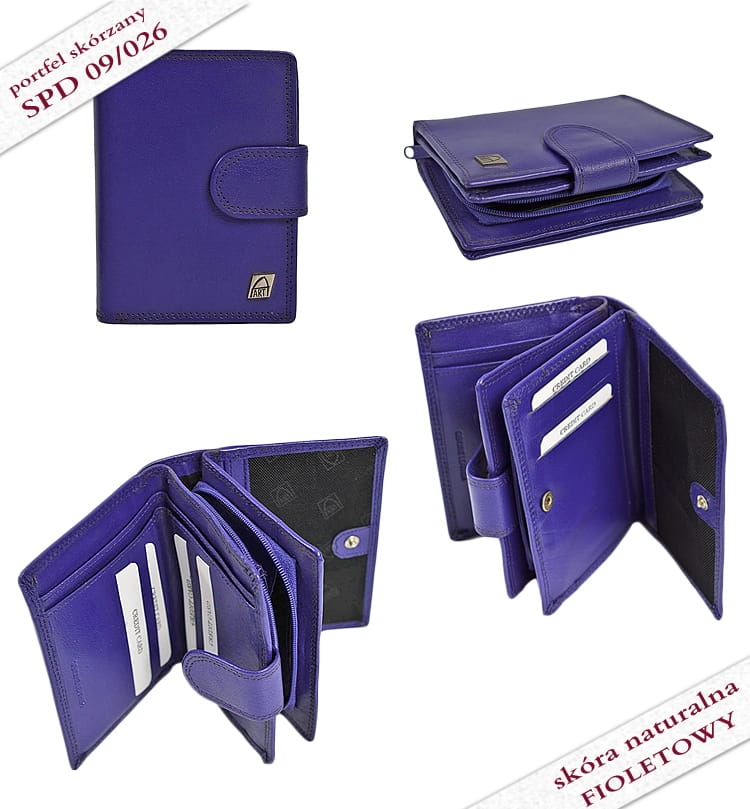 Praktyczny, średniej wielkości, poręczny i funkcjonalny portfel damski. Portfel mieści dowód rejestracyjny samochodu, prawo jazdy, dowód osobisty i karty płatnicze.