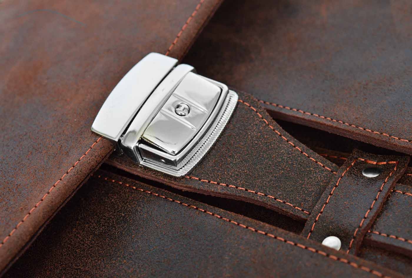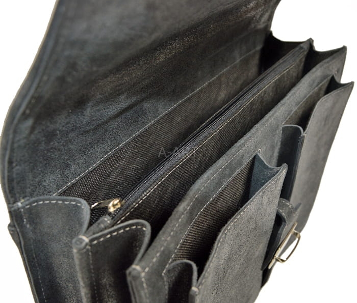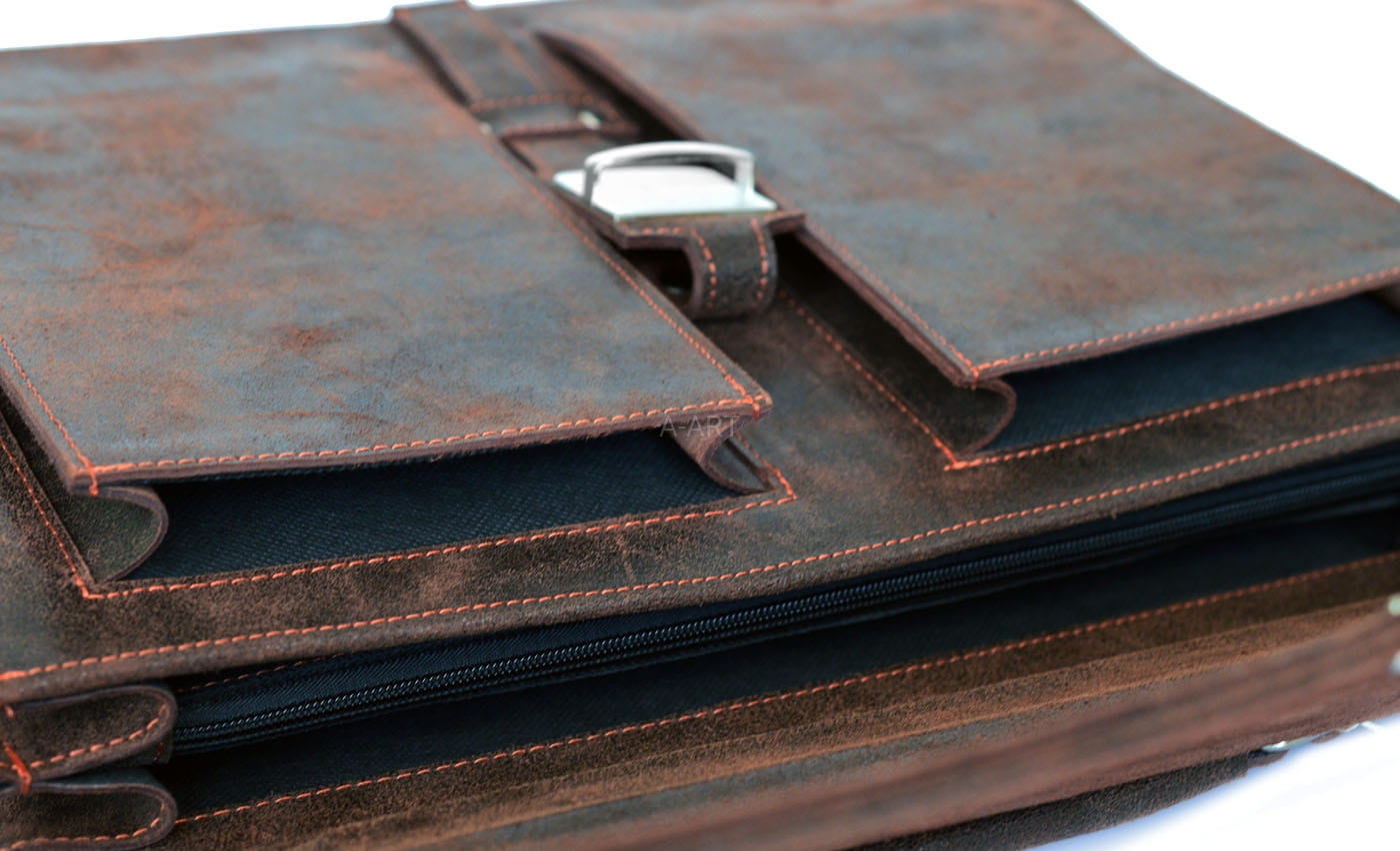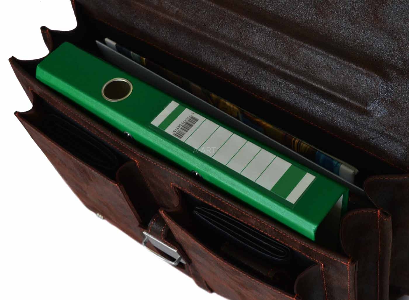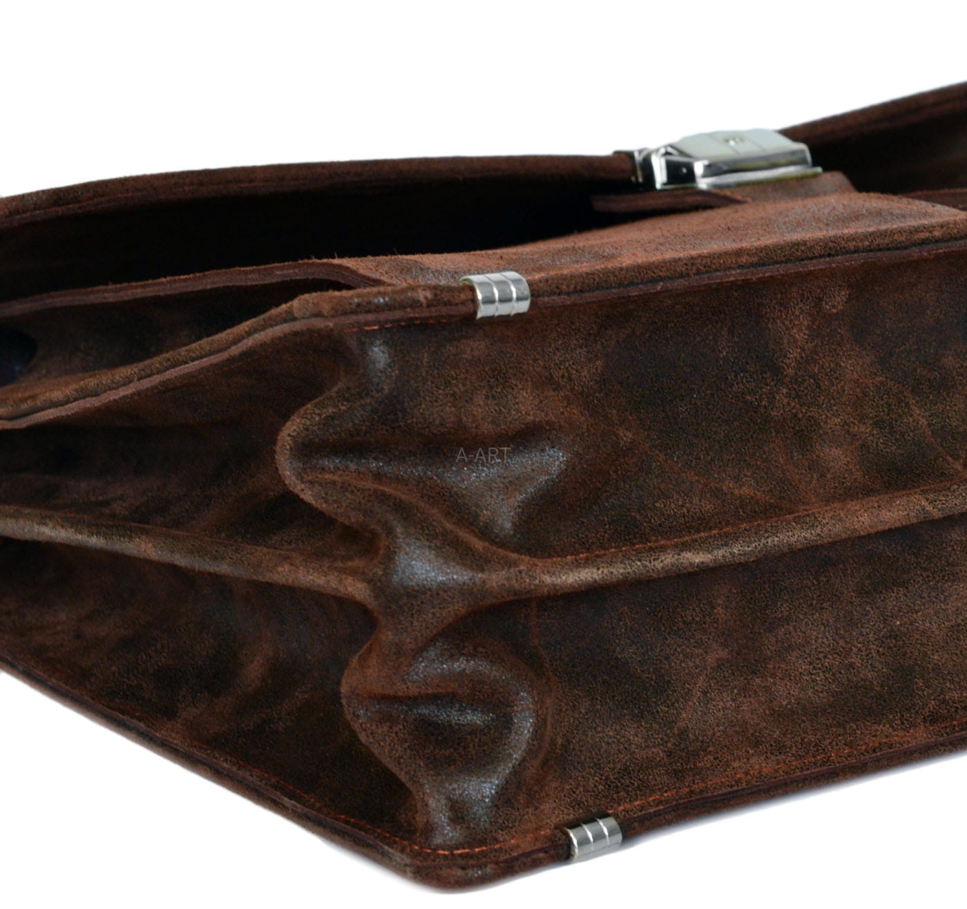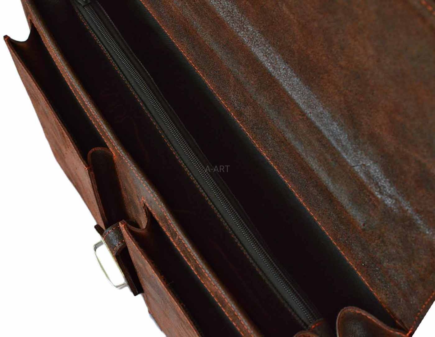 Duża teczka skórzana męska do ręki model TSM14/01. Teczka ręcznie uszyta ze skóry naturalnej, postarzanej w stylu vintage.
