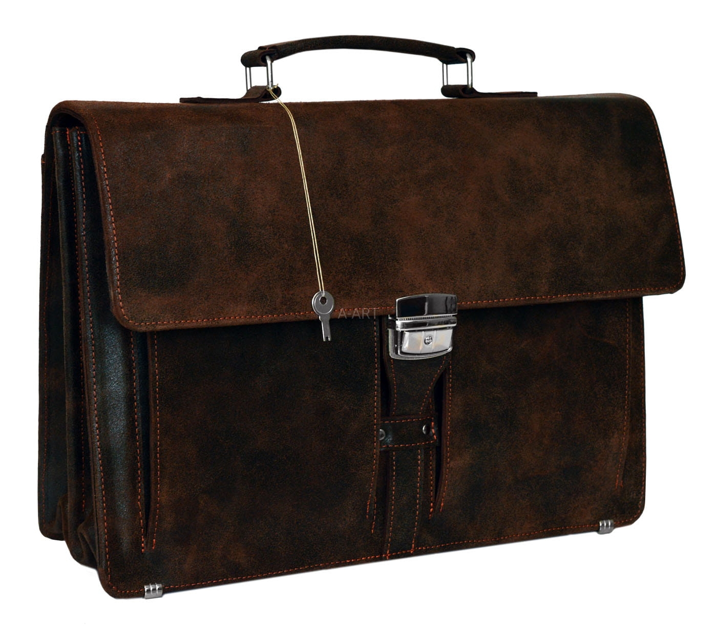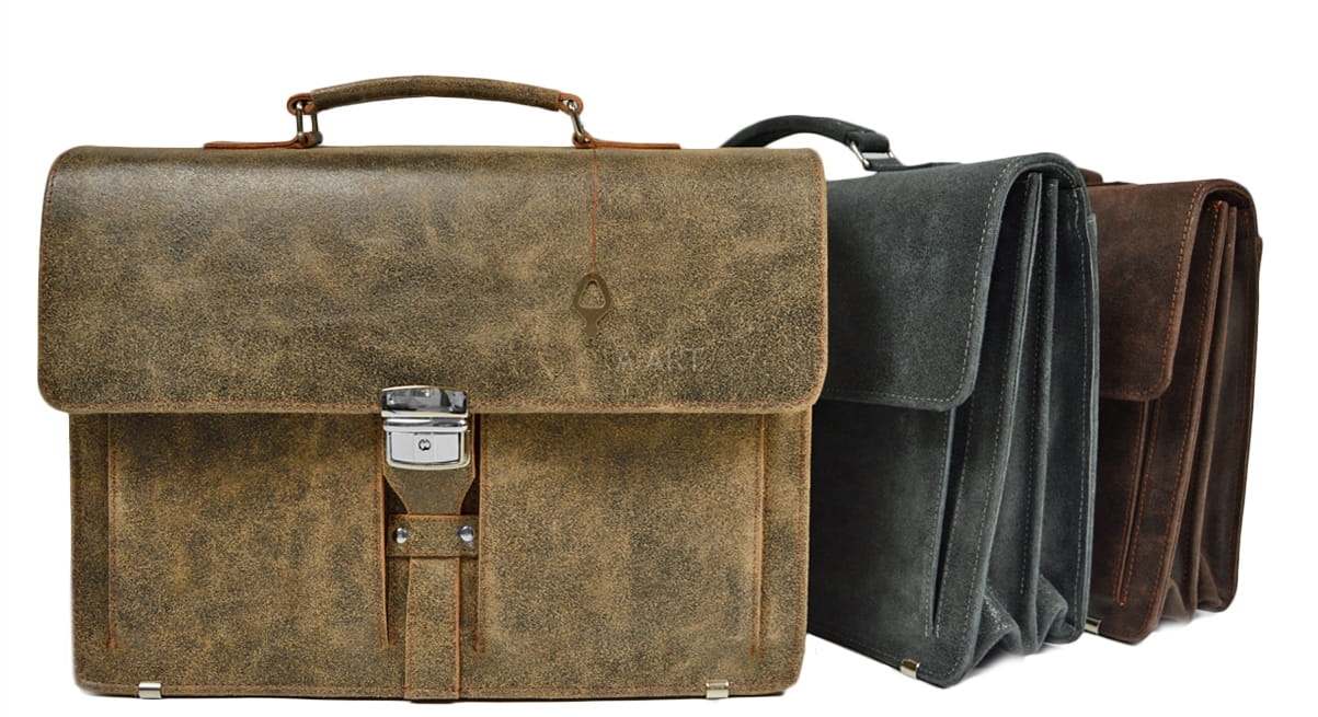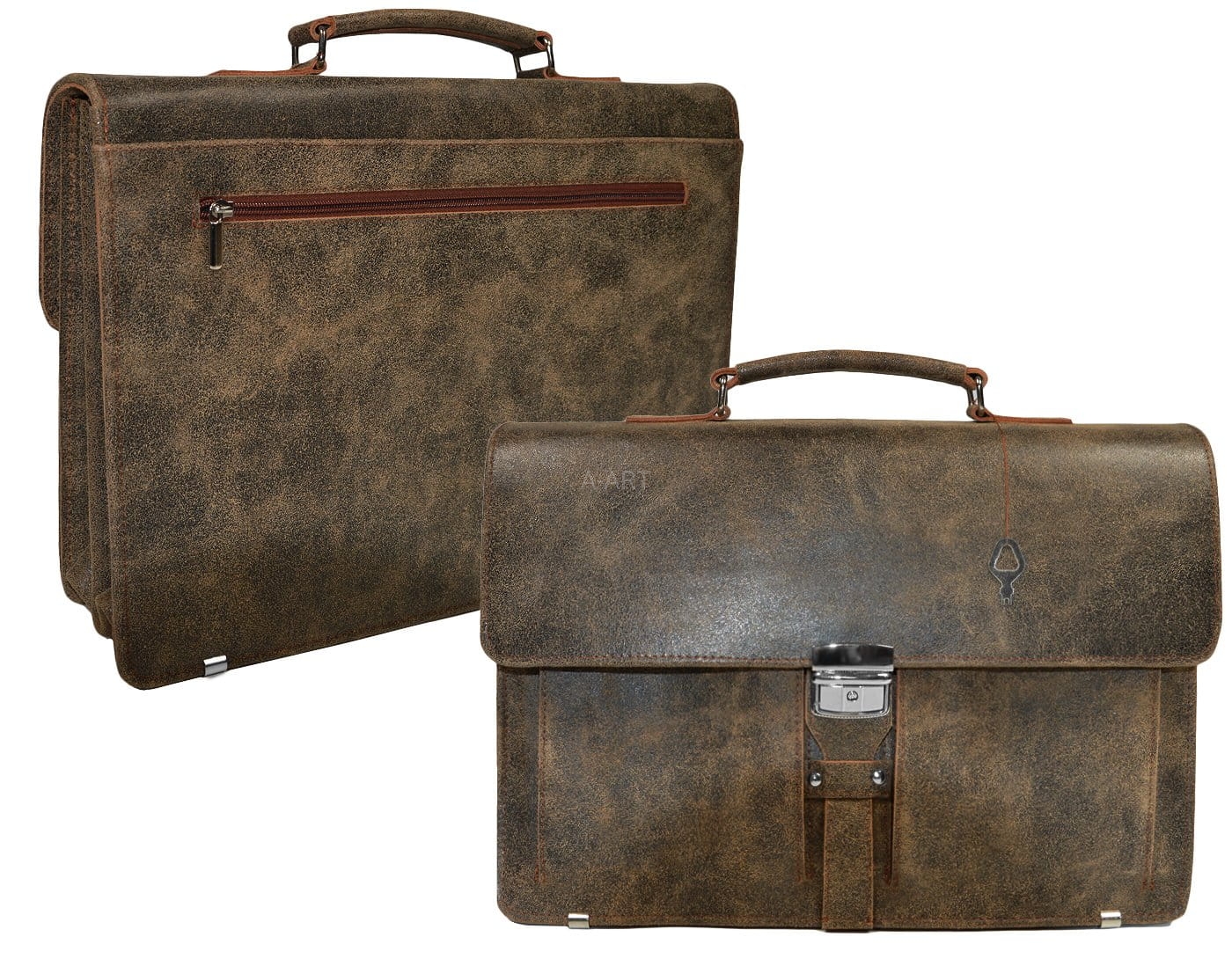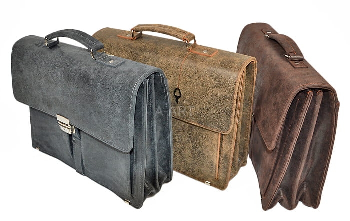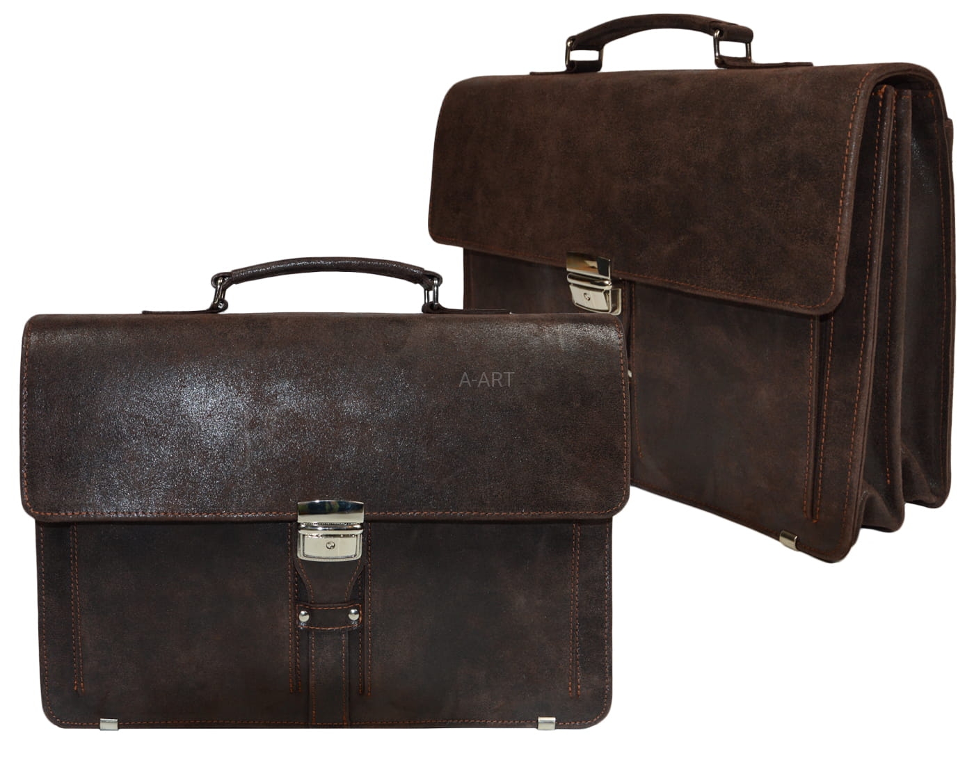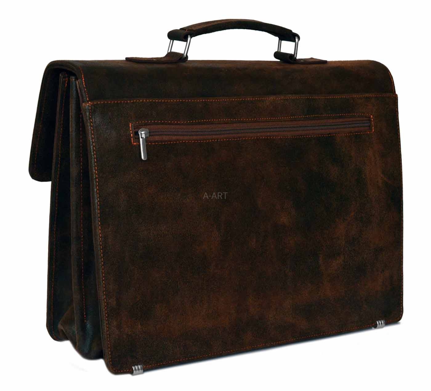 Duża teczka skórzana męska do ręki model TSM14/01. Teczka ręcznie uszyta ze skóry naturalnej, postarzanej w stylu vintage.