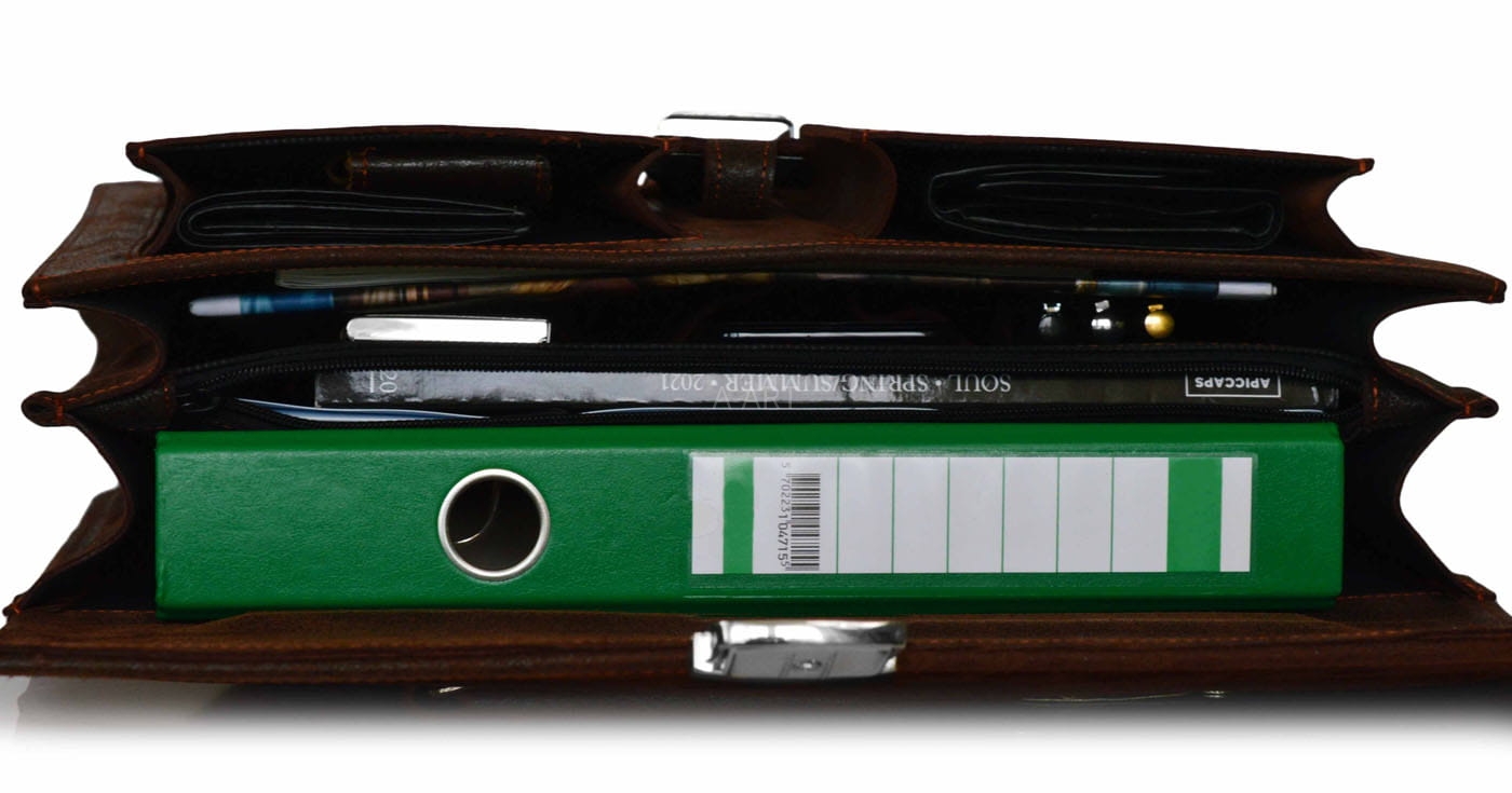Produkt polski, ręcznie wykonany z najwyższą starannością i dbałością o każdy szczegół. Teczka dwukomorowa dostępna w kolorze klasycznej czerni lub zawsze modnym pięknym brązie. Świetna jakość w bardzo atrakcyjnej cenie.