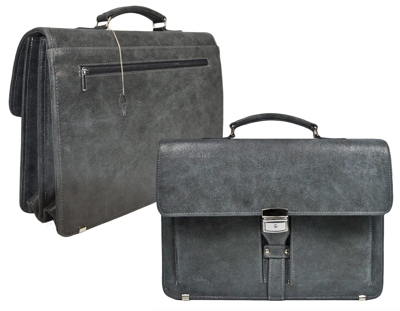 Elegancka teczka skórzanazamykana na zamek szyfrowy została uszyta ze skóry naturalnej o dużym połysku. Teczka jest dostępna w kolorze klasycznej czerni.