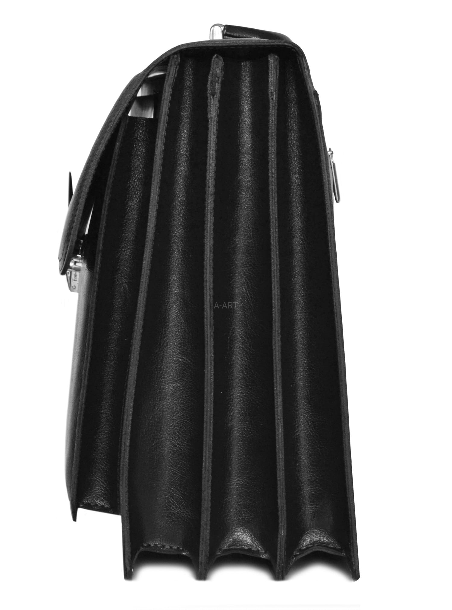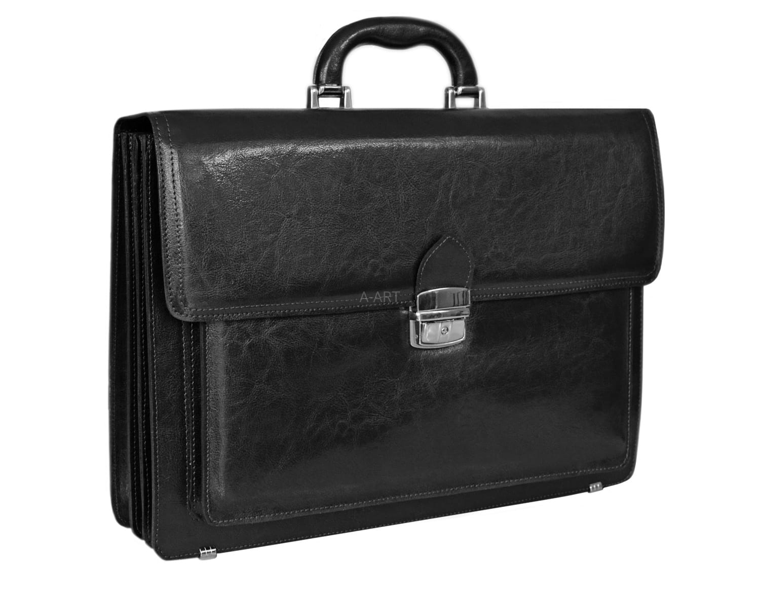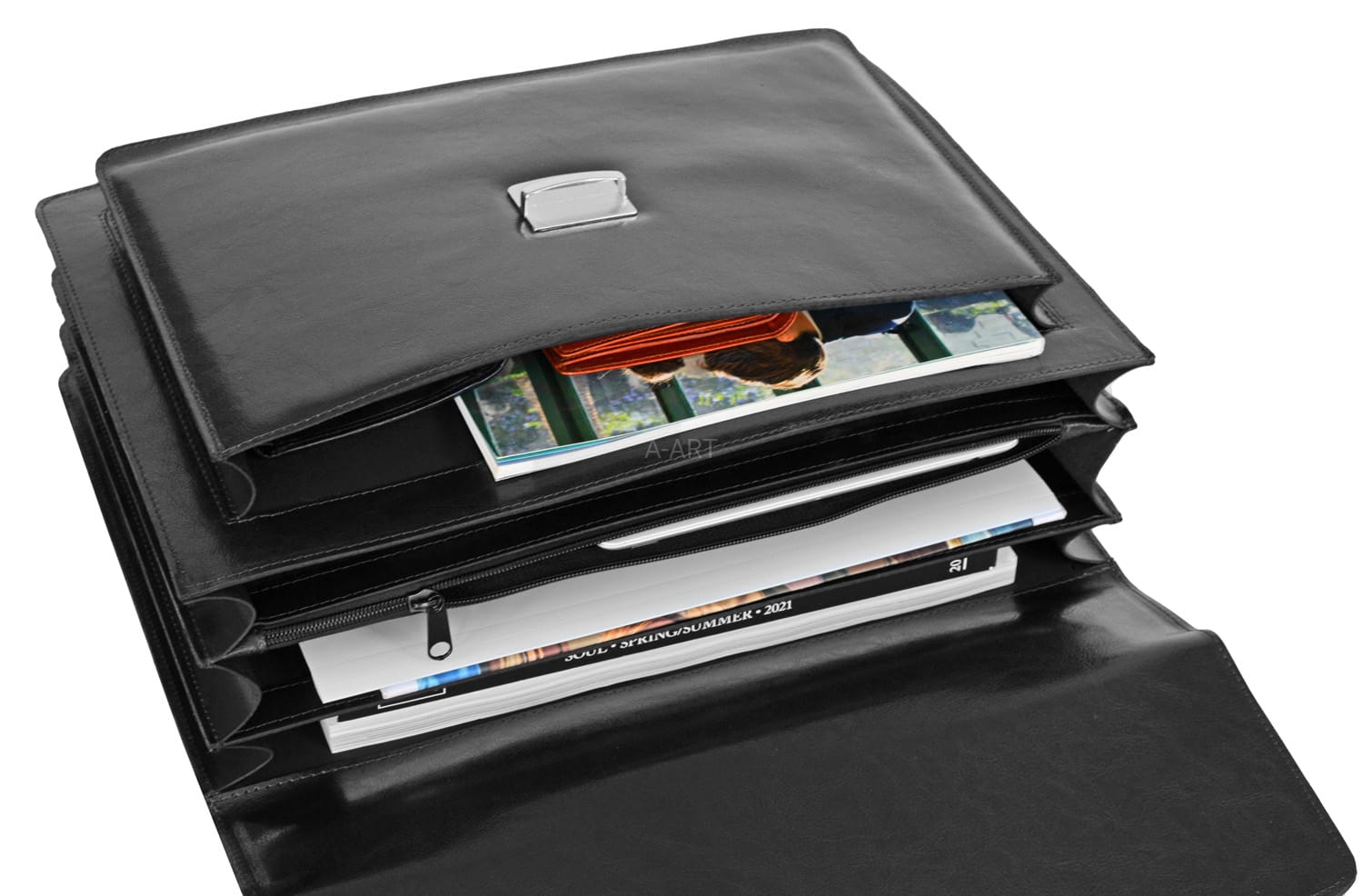 Teczka zamykana klapą na włoski zamek typu tic-tac w środku znajdują się 3 pojemne komory.