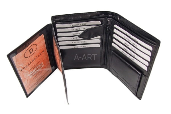 Duży portfel, mieści karty i dokumenty. Za pierwszym razem zamówiłem inny ale bez problemu mi wymienili na ten i jest super.