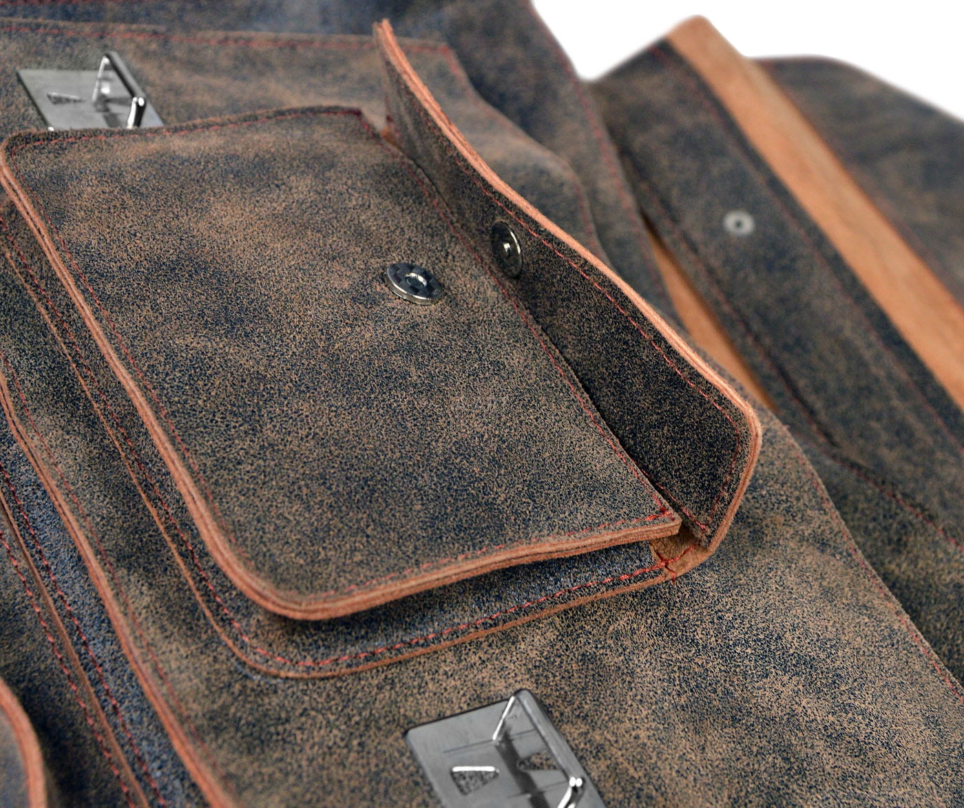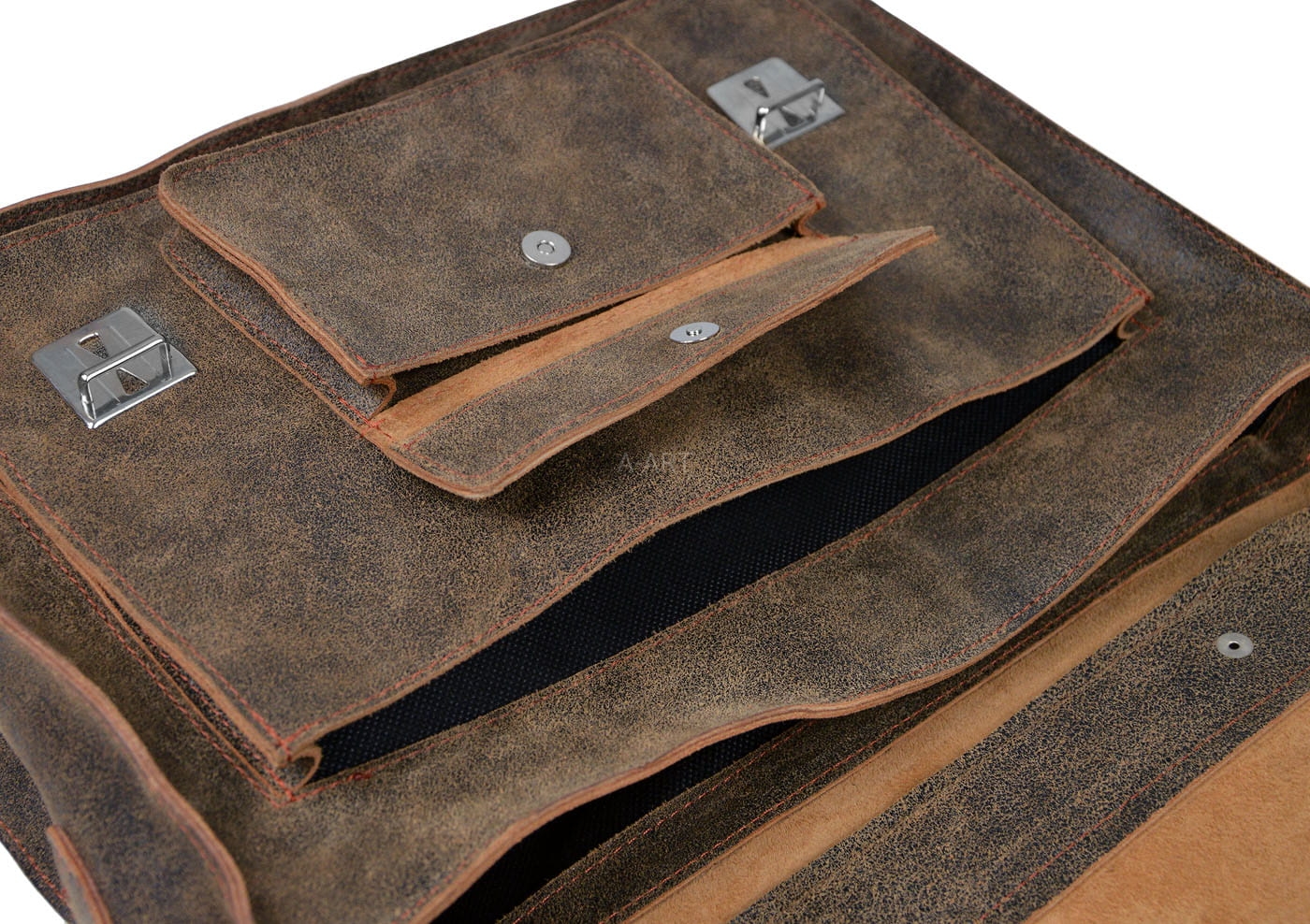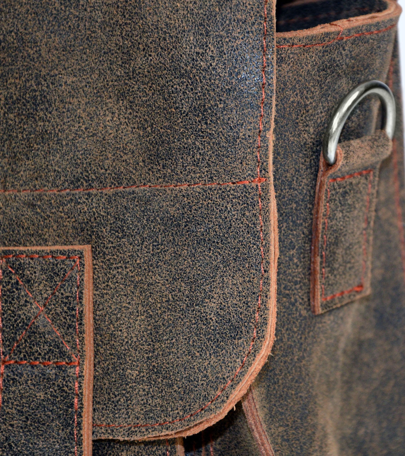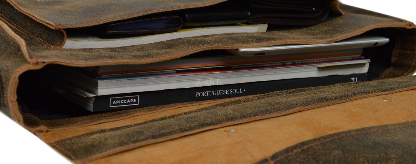 Torba handmade, uszyta w Polsce ze skóry naturalnej w stylu vintage. Doskonale sprawdzi się w roli teczki lub jako duża torba crossbody. Posiada szeroki, wygodny pasek do noszenia na ramieniu, dzięki czemu jest ona praktyczna i funkcjonalna.