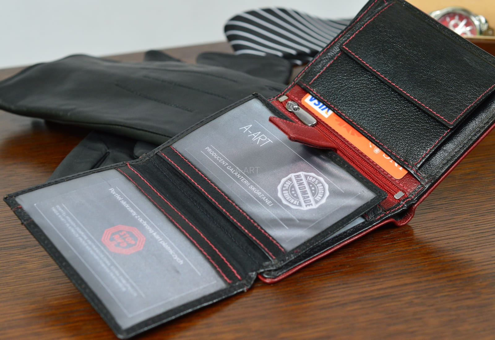 - Skóra naturalna z której wykonany został portfel, gwarantuje długotrwałe użytkowanie produktu,