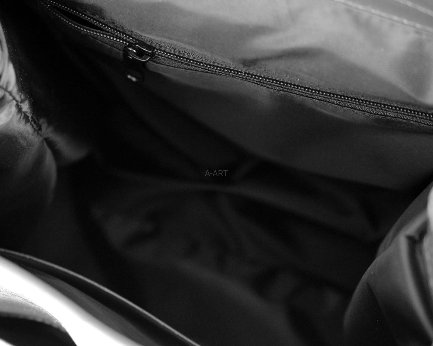 Praktyczny i funkcjonalny plecak. W środku znajduje się jedna duża komora i dwie kieszonki (otwarta i zamykana na suwak). Z przodu plecaka znajdują się dwie otwarte kieszonki o wymiarach 13 x 13cm. Wymiary bocznych kieszonek to 16 x 12cm. Z tyłu znajduje się dodatkowa kieszeń zamykana na suwak.