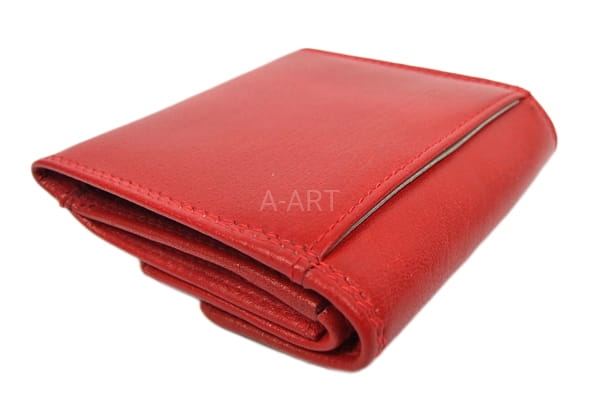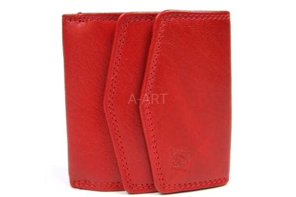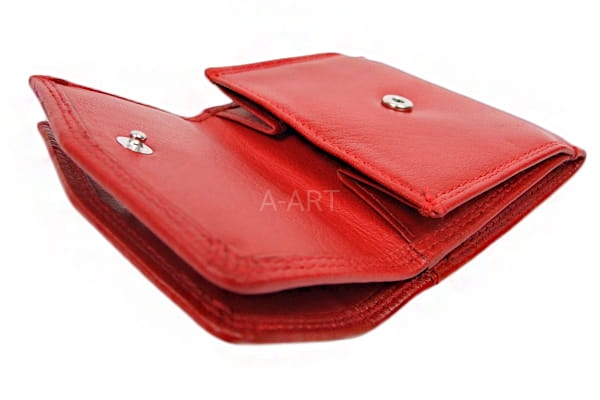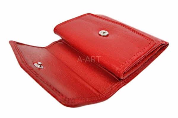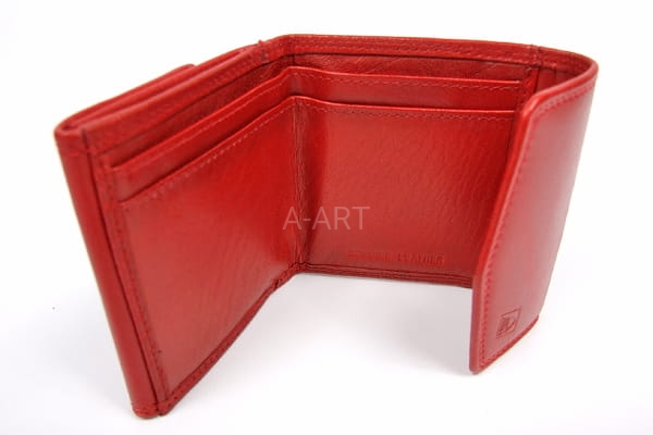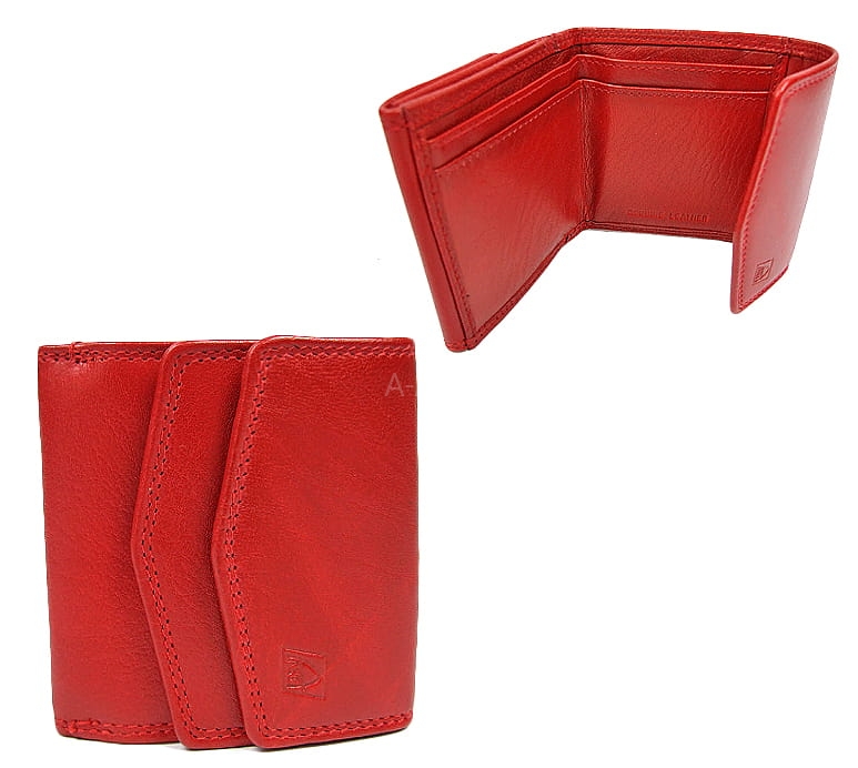 Praktyczny i funkcjonalny, mały portfel damski dostępny w kolorze czerwonym, szyty podwójnym ściegiem na styl włoski.