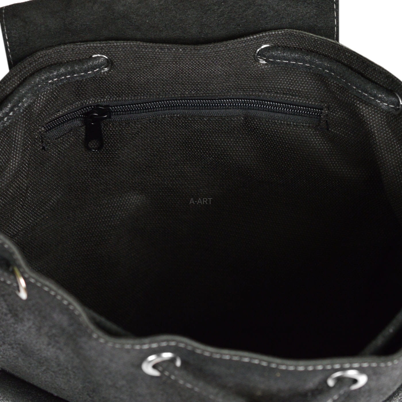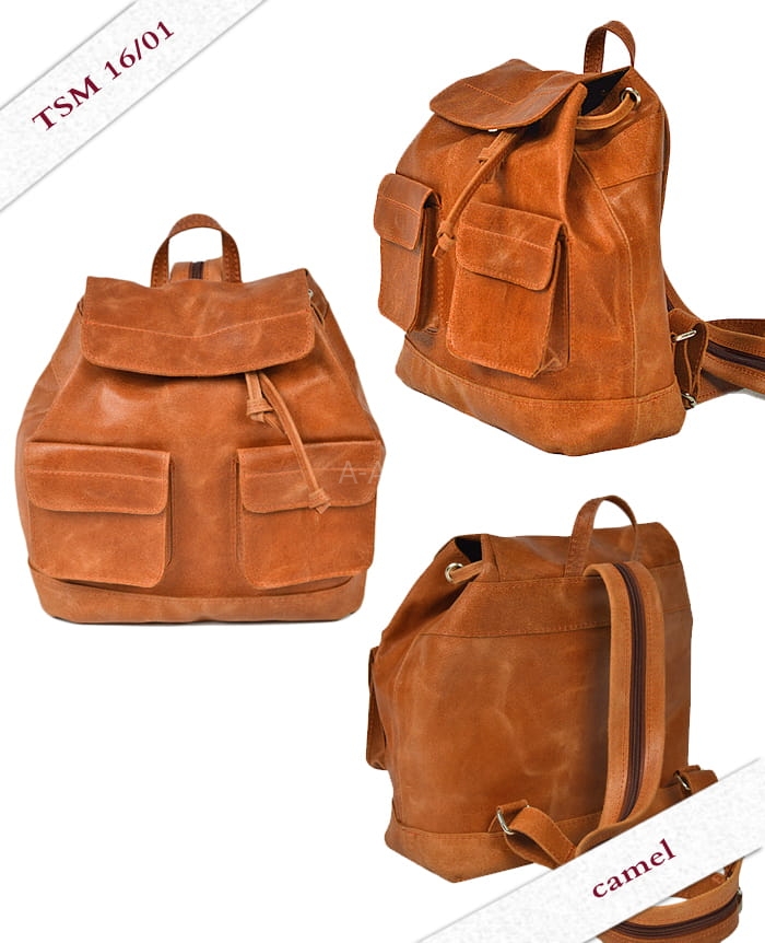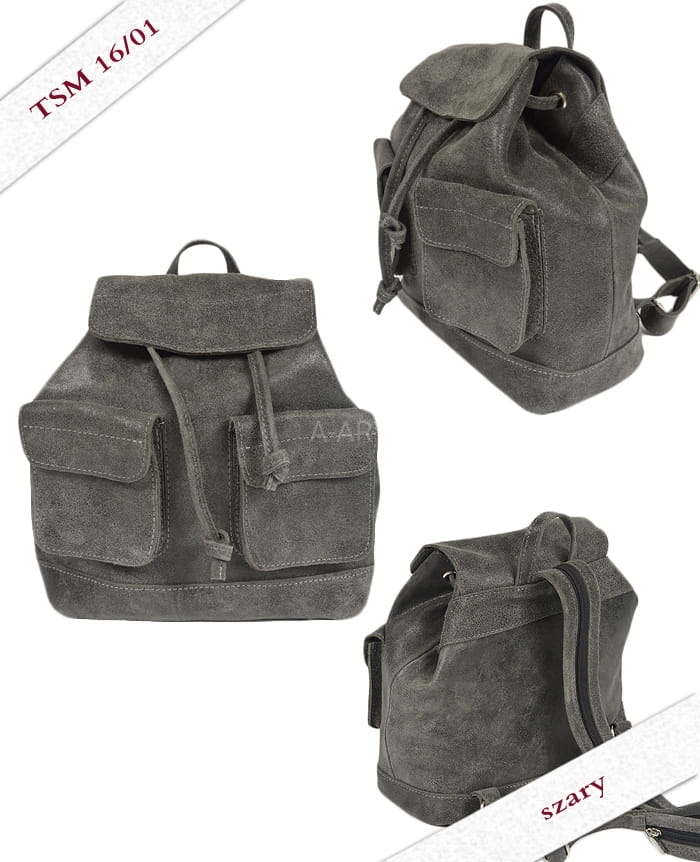 Praktyczny i funkcjonalny plecak skórzany z jedną dużą komorą wewnątrz. Z przodu plecaka znajdują się dwie małe zewnętrzne kieszonki o wymiarach 11 x 12cm.