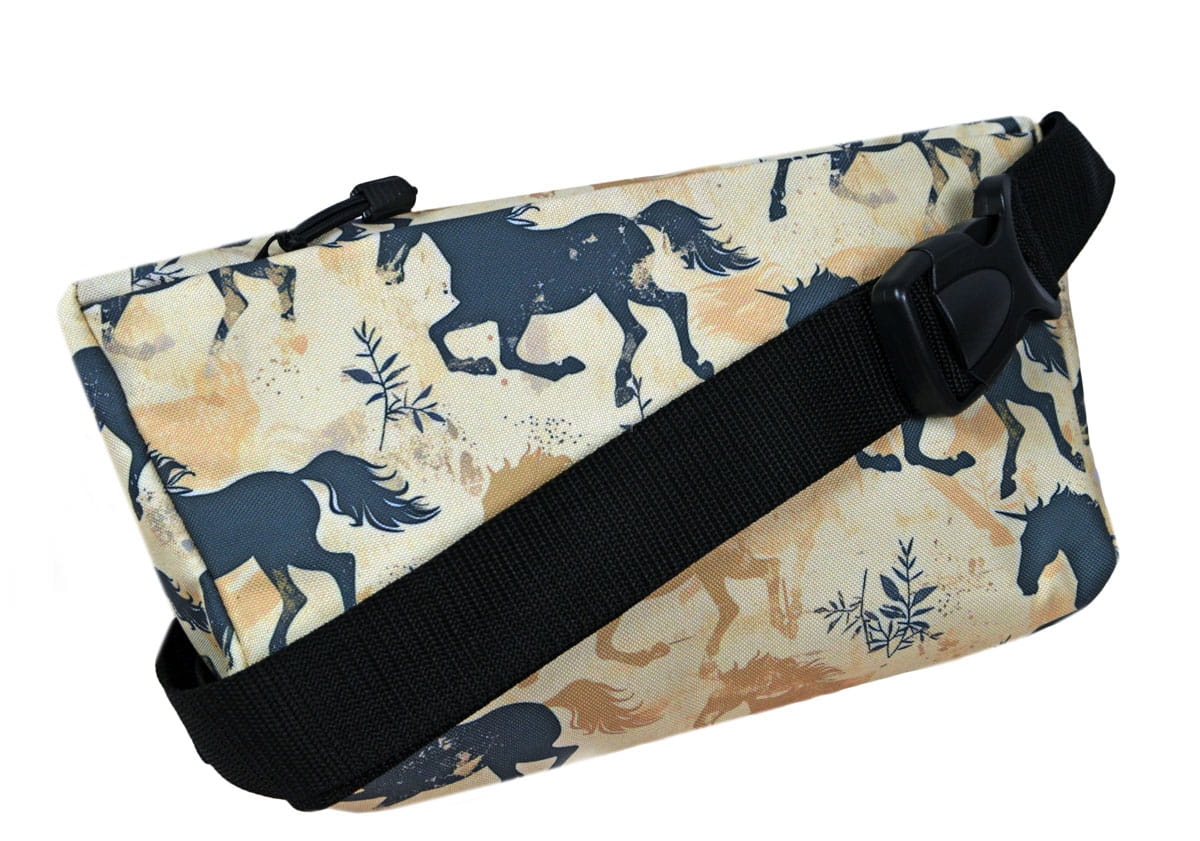 Wyjątkowo wygodna i funkcjonalna saszetka z motywem galopujących koni to obowiązkowy "must have" każdego miłośnika koni.