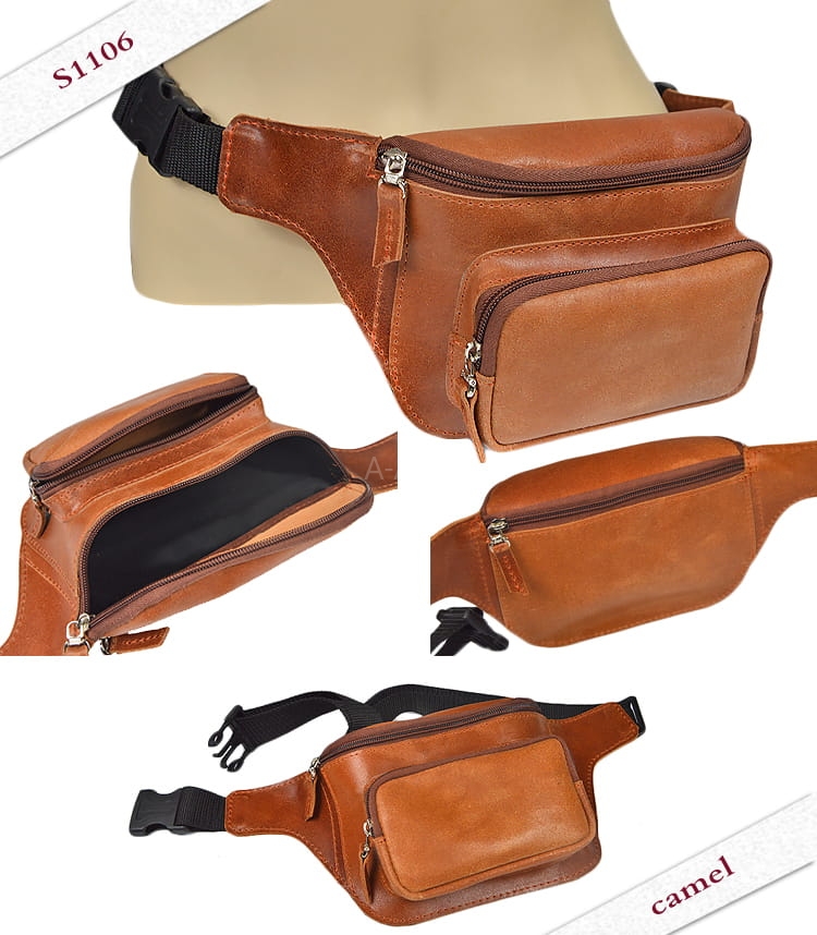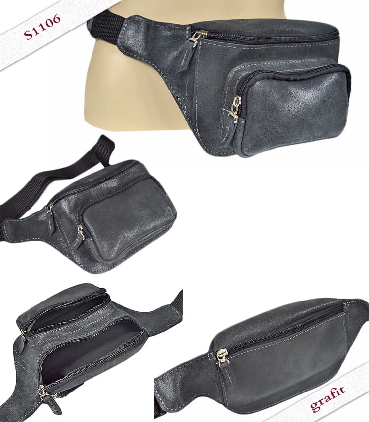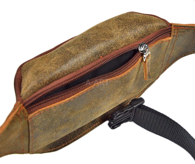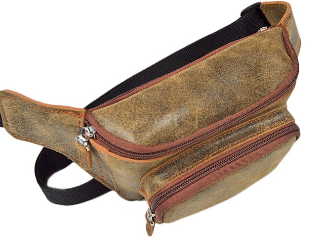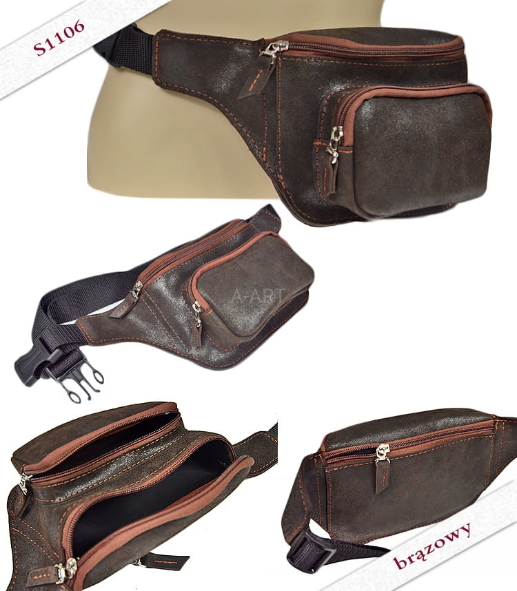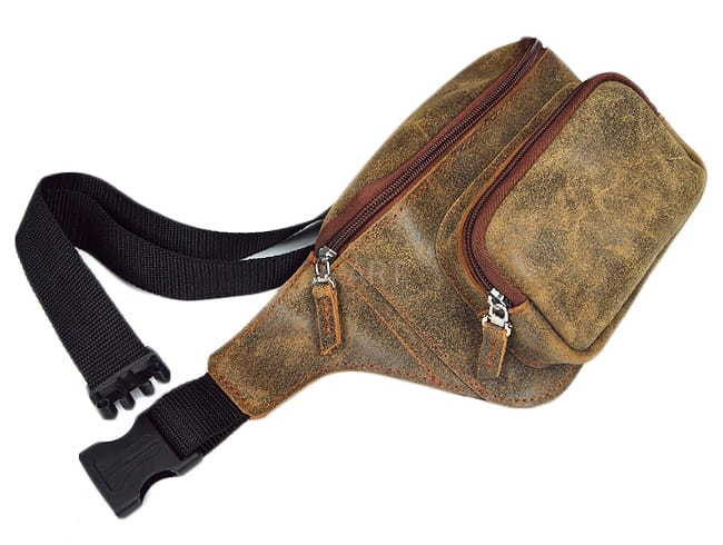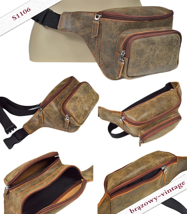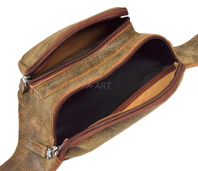 Funkcjonalna i praktyczna, skórzana biodrówka została wykonana ze skóry naturalnej postarzanej. Saszetka posiada jedną główną komorę i dwie kieszonki zamykane na suwak.