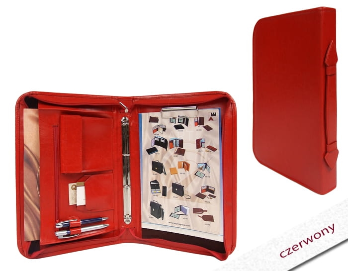 Elegancka teczka skórzana dostępna w kolorach: czarnym, brązowym, czerwonym. Aktówka skórzana, biznesowa mieści dokumenty formatu A4.
