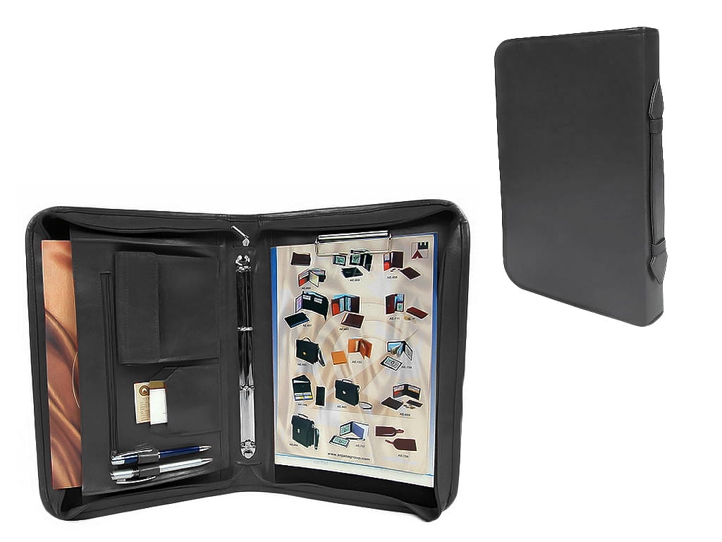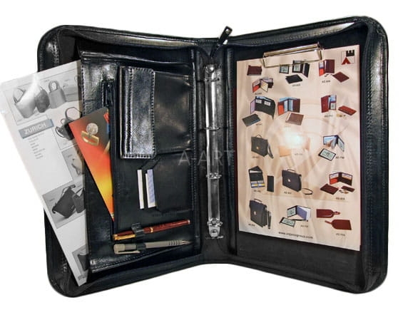 - wewnątrz klips, ringi, uchwyty na długopisy, różne kieszenie