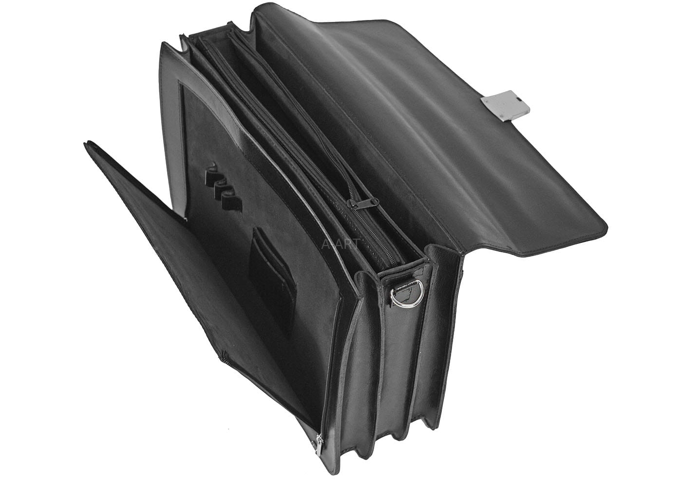 Produkt polski, ręcznie wykonany z najwyższą starannością i dbałością o każdy szczegół. Teczka trzykomorowa ze specjalnie wydzielonym miejscem na laptopa, dostępna w kolorze klasycznej czerni. Doskonała jakość w bardzo atrakcyjnej cenie.
