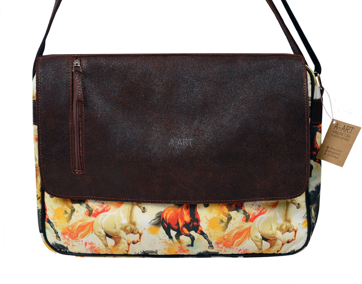 Duża torba na ramię z motywem galopujących koni - mieści A4