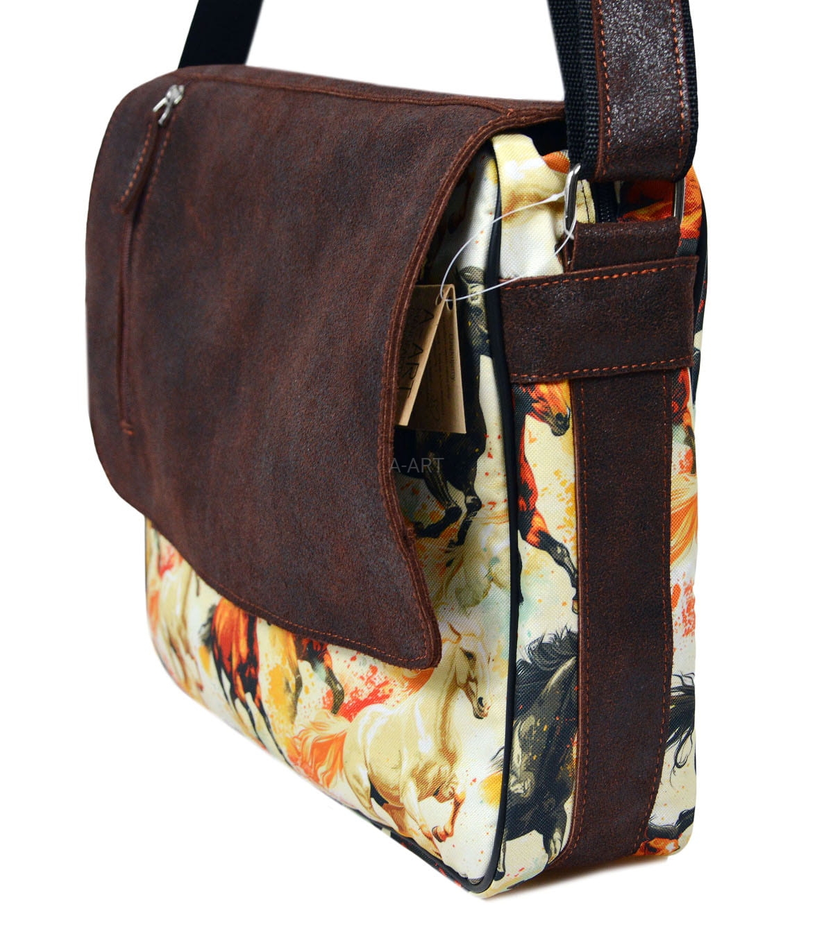 Duża torba na ramię z motywem galopujących koni - mieści A4.